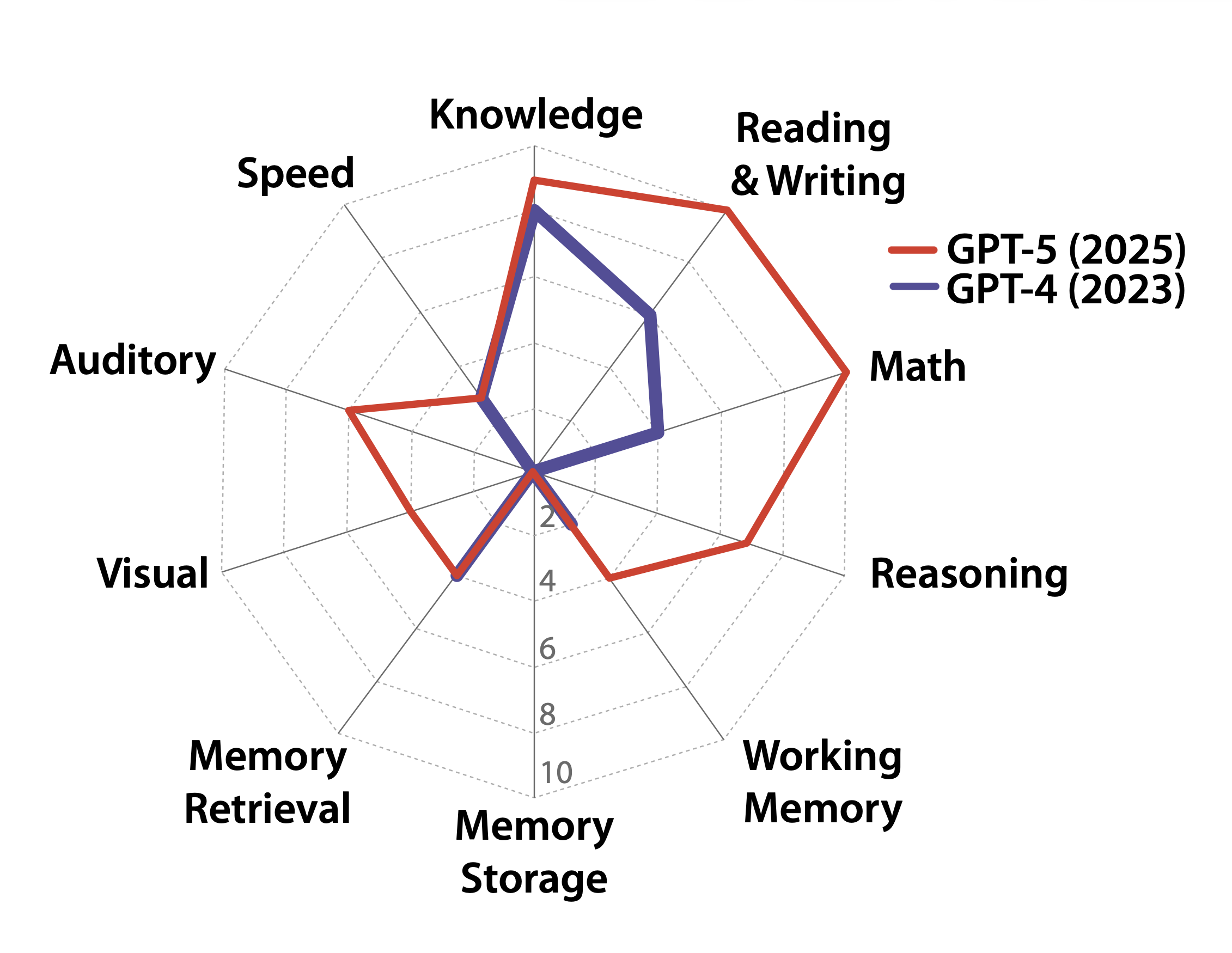 Applicano questa griglia ai modelli esistenti, come GPT-4 e GPT-5, assegnando un punteggio percentuale per ciascun dominio e un AGI Score totale su 100.