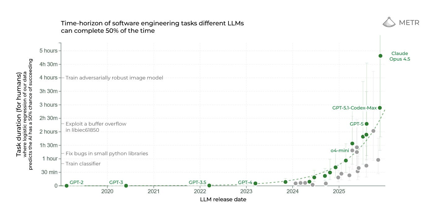 Esiste infatti una metrica (chiamata METR) che misura la durata dei task che un’AI riesce a completare in autonomia con una certa affidabilità…
